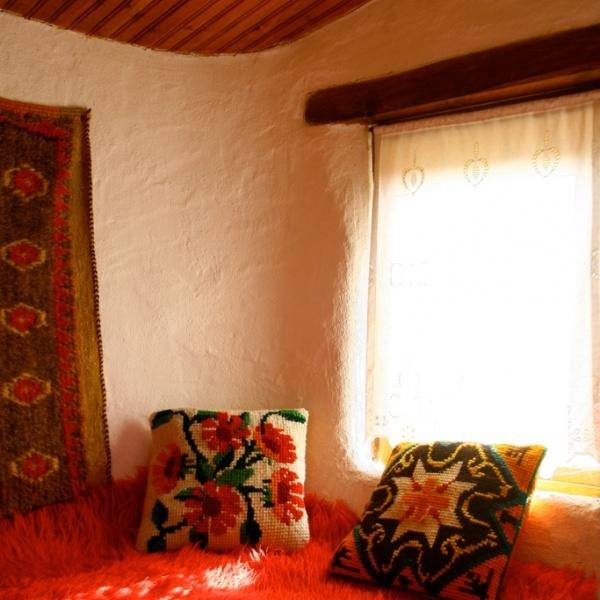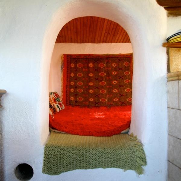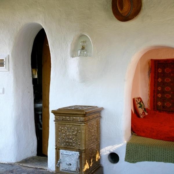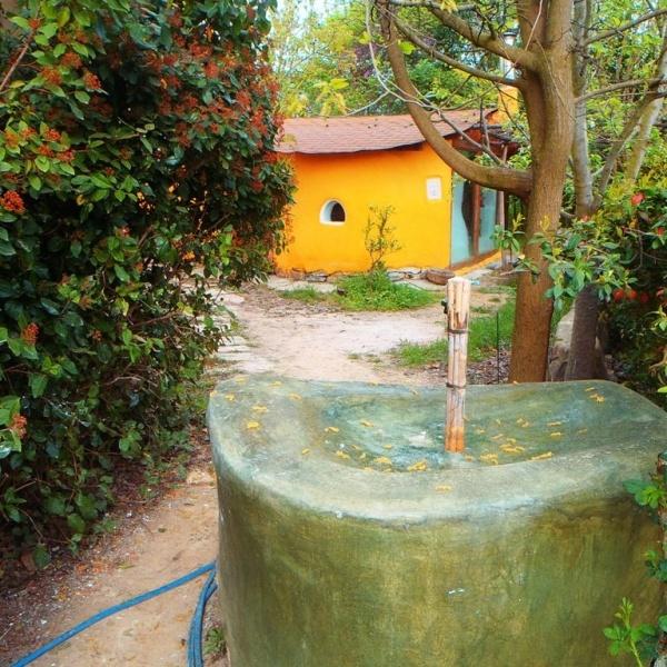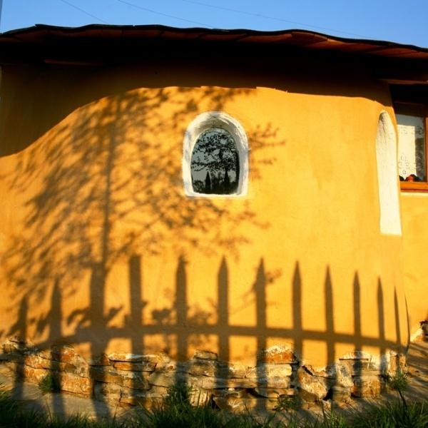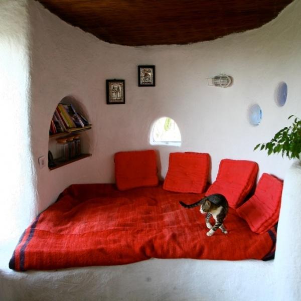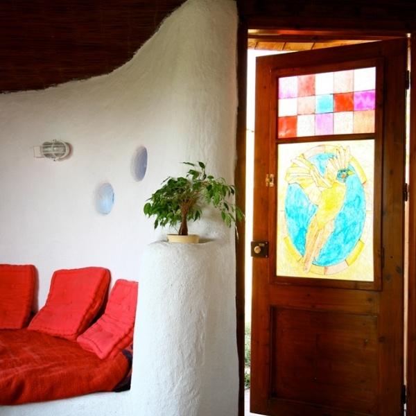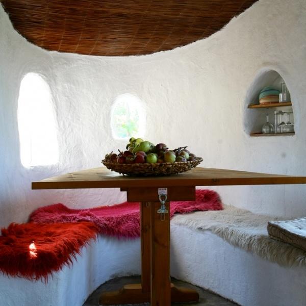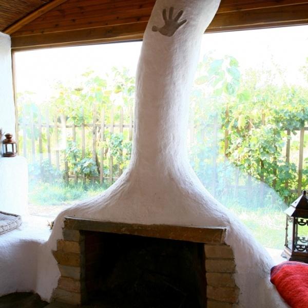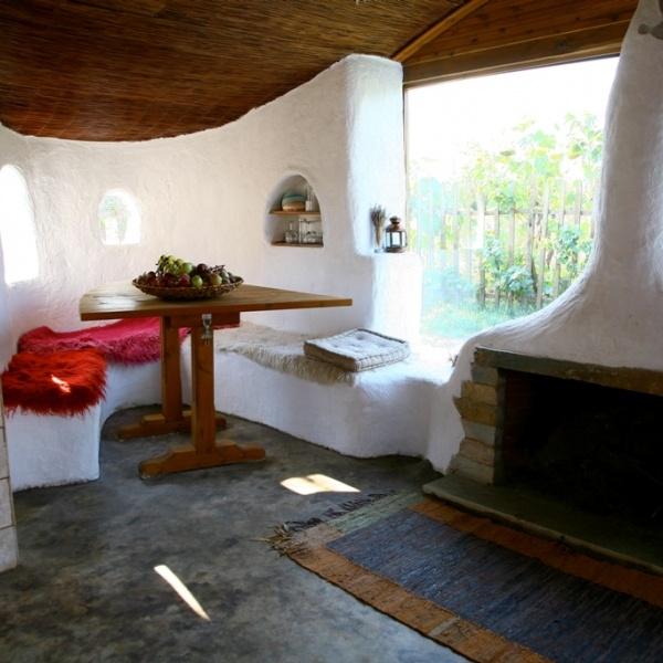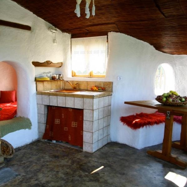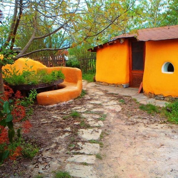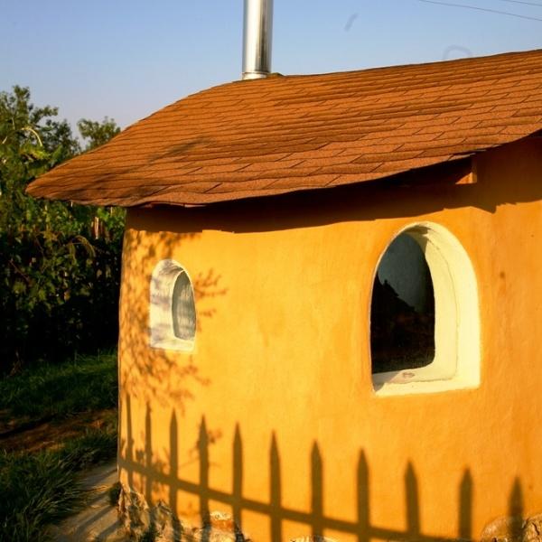 Είναι το πρώτο μας σπίτι με φυσικά υλικά και ένα από τα πρώτα παγκοσμίως μετά την αναβίωση της φυσικής δόμησης στις αρχές της δεκαετίας του 90. Το στοίχημα ήταν αν μπορεί να γίνει κάτι τέτοια από δύο άτομα και πόσο οικονομικό μπορεί να είναι. Χτίστηκε με τη μέθοδο του στιβαχτού πηλού (cob). Η απόφαση μας βασίστηκε στην στιβαρότητα της κατασκευής, την απλότητα των εργαλείων, το χαμηλό κόστος και την μεγάλη ελευθερία που προσφέρει στον σχεδιασμό. Μας γοήτευσε, και εξακολουθεί να μας γοητεύει, η δυνατότητα του να πλάθεις το σπίτι με τα χέρια σα γλυπτό. Για την κατασκευή του χρησιμοποιήσαμε κάποια υλικά που συλλέξαμε μόνοι μας και κάποια άλλα που μας προσφέρθηκαν δωρεάν ή αγοράσαμε μεταχειρισμένα. Χρειάστηκαν πέντε μήνες προσωπικής εργασίας, δουλεύοντας απογεύματα και Σαββατοκύριακα, για να χτίσουμε ένα ολόκληρο σπίτι κυριολεκτικά με τα χέρια μας.