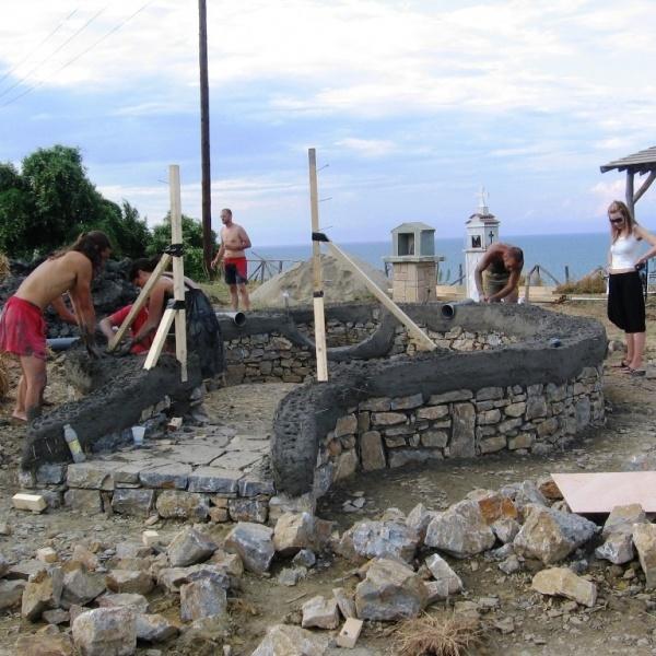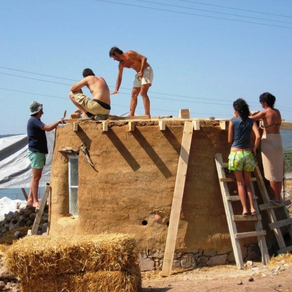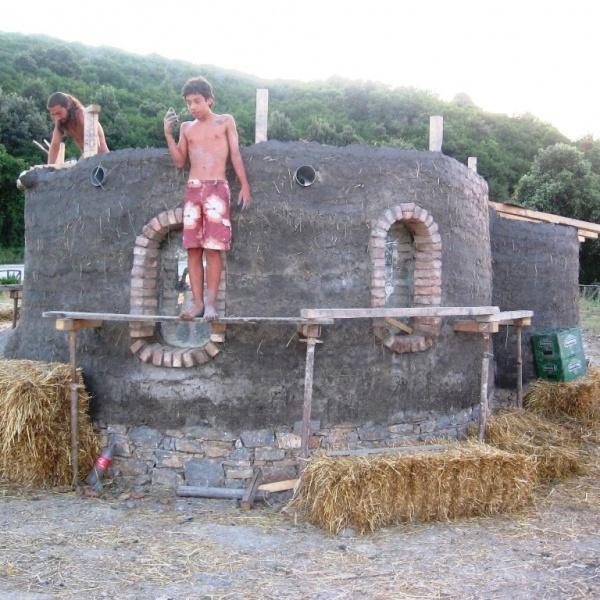 Having a histroy of thousands of years, cob has been used until the middle of the last century in England, where one can find 500 years old houses built this way. Some of its advantages are the construction rigidity, the simplicity of the tools used and the great freedom of the design. Since no straight forms are demanded the material itself leads to organic shapes: curved walls, domes and arcs. Building with cob is an experience similar to clay sculpting. Disadvantages counted are the slow building procedure and the difficulty of construction. Cob houses are very resistant to a variety of weather conditions that makes them comfortable and viabile at the most cold climates but also in dessert conditions. Cob has been used for thousands of years even to the harsh climate conditons of the British coasts of the Aleoutian Islands. Thousands of comfortable and graphic cob houses at England have been habited continuously for centuries having great current market value. The rebirth of cob started in the US, where enjoys a continuously growing popularity not only because of the advantages already mentioned above but also, because of the ability provided to the owner- builder to avoid the enormous financial burdens and commitments involving the purchase of housing.
