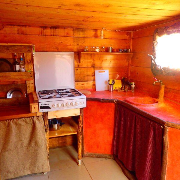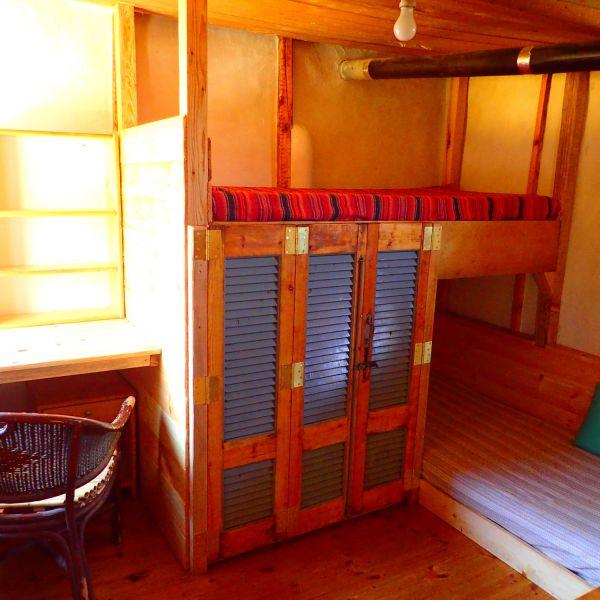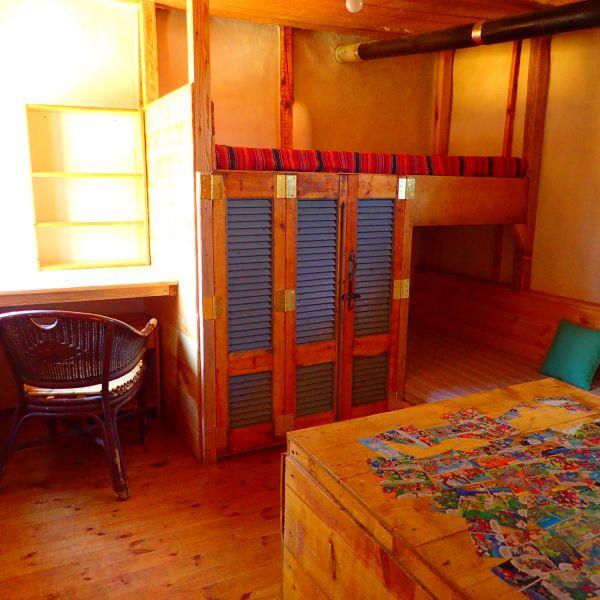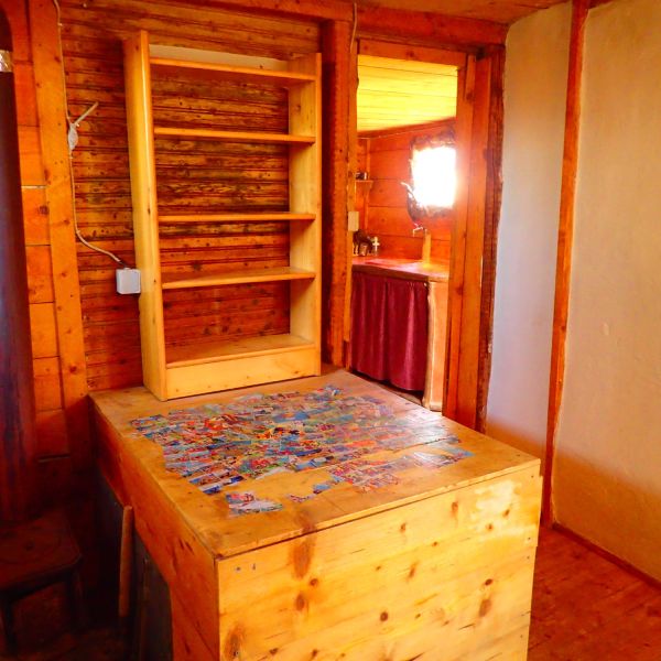 Κόλλησε σε μια παλιότερη ξύλινη αποθήκη που υπήρχε, σχηματίζοντας έτσι ένα χώρο δύο δωματίων. Είναι φτιαγμένο με τη μέθοδο του αχυροπηλού.
