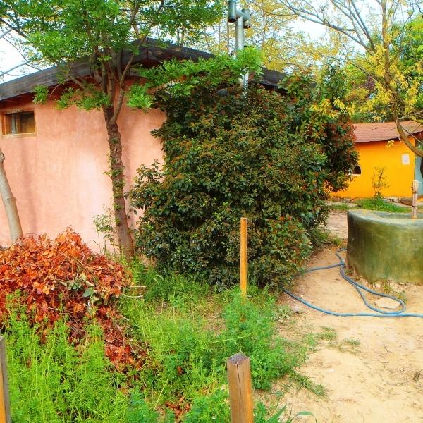 Ξεκίνησε να χτίζεται από μια παρέα φίλων και ολοκληρώθηκε από παιδιά δημοτικού σχολείου. Οι τοίχοι του είναι φτιαγμένοι με τη μέθοδο του αχυροπηλού. Έχει ξύλινο σκελετό και φυτεμένη στέγη. Το χώμα για την κατασκευή του πάρθηκε από το χώρο που τώρα αποτελεί το κελάρι συντήρησης τροφίμων. Είναι επίσης ένα πείραμα για την επανάχρηση υλικών. Έτσι όλα τα υλικά που χρησιμοποιήθηκαν είναι μεταχειρισμένα.