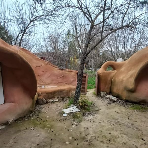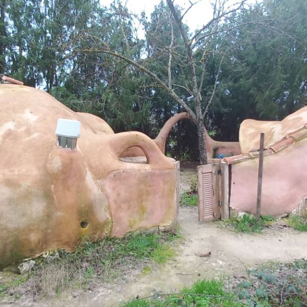 Χωρητικότητας 2-3 ατόμων έγιναν γρήγορα και πολύ οικονομικά κατά τη διάρκεια μιάς εκπαιδευτικής δραστηριότητας. Σκελετός ξερολιθιά, τοίχοι από γαιόσακους και ξύλινη στέγη με την τεχνολογία του γεωδαιτικού θόλου. Επενδύθηκαν με μεταχειρισμένα ρούχα και κουρέλια βουτηγμένα στον ασβέστη, μονώθηκαν με παλιά ρούχα. Ζεσταίνονται με τζάκι και rocket mass heater..